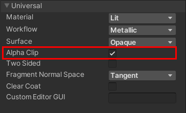 <div align="left"><figure><img src="https://371873058-files.gitbook.io/~/files/v0/b/gitbook-x-prod.appspot.com/o/spaces%2FDmmEjlCGzGOqRX7UsP6L%2Fuploads%2FDXFwylqnjJylntSqdiXW%2FShaderGraph_Alpha_Clip_Enabled.png?alt=media&#x26;token=6f54f41d-a9d4-48fe-b900-1a1cf3fd5e5a" alt="" width="273"><figcaption></figcaption></figure></div>